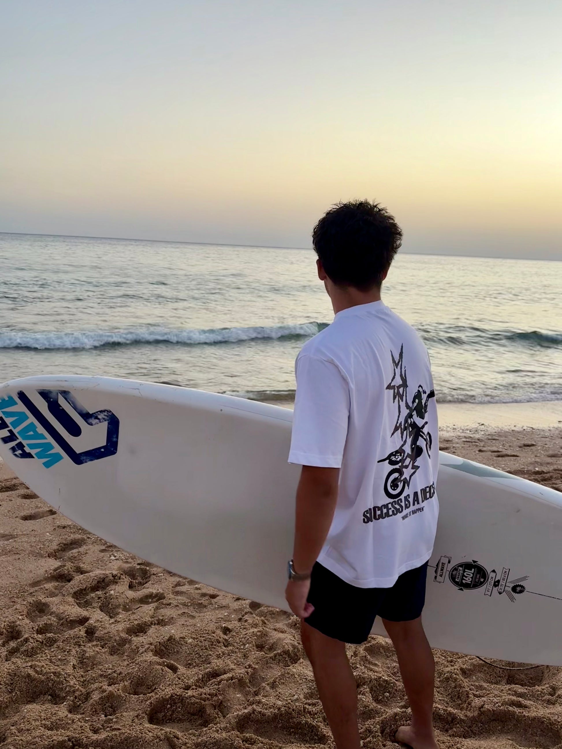 Con el logo "KEX" y la estrella al frente, y una imagen brutal en la espalda: un rider volando con la frase “SUCCESS IS A DECISION.”